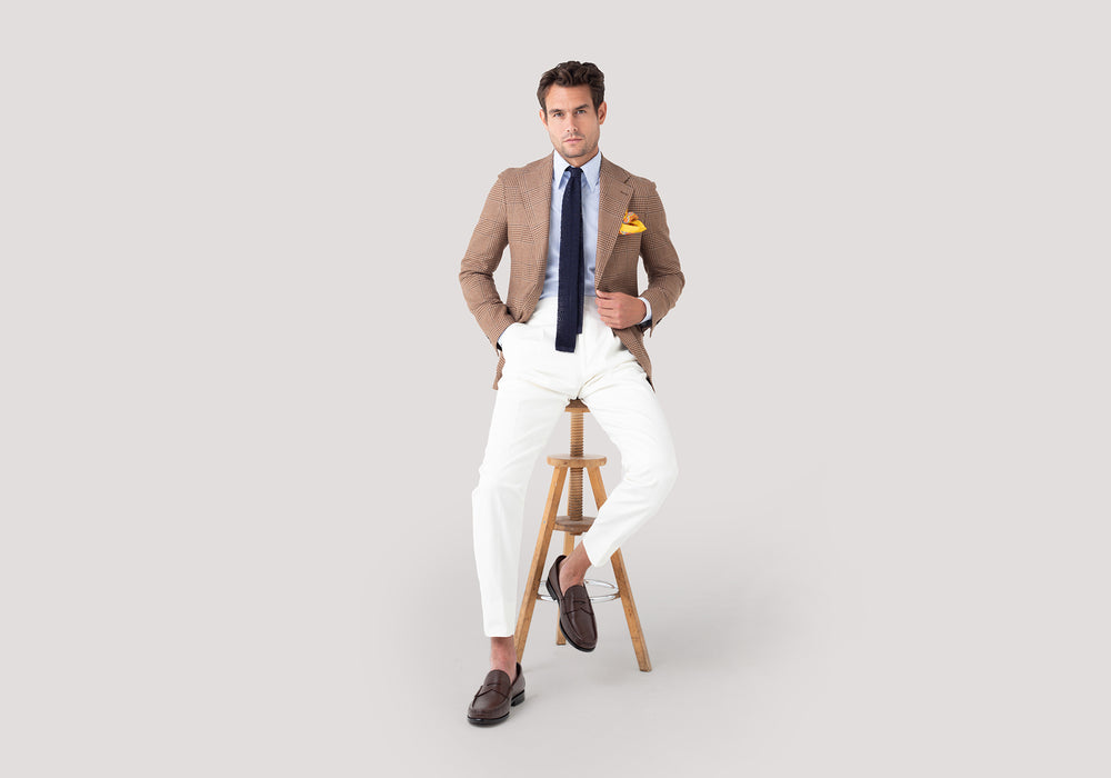 Knitted on a traditional jacquard loom with pure Silk yarns and closed by hand at our Tie-maker in Como.
